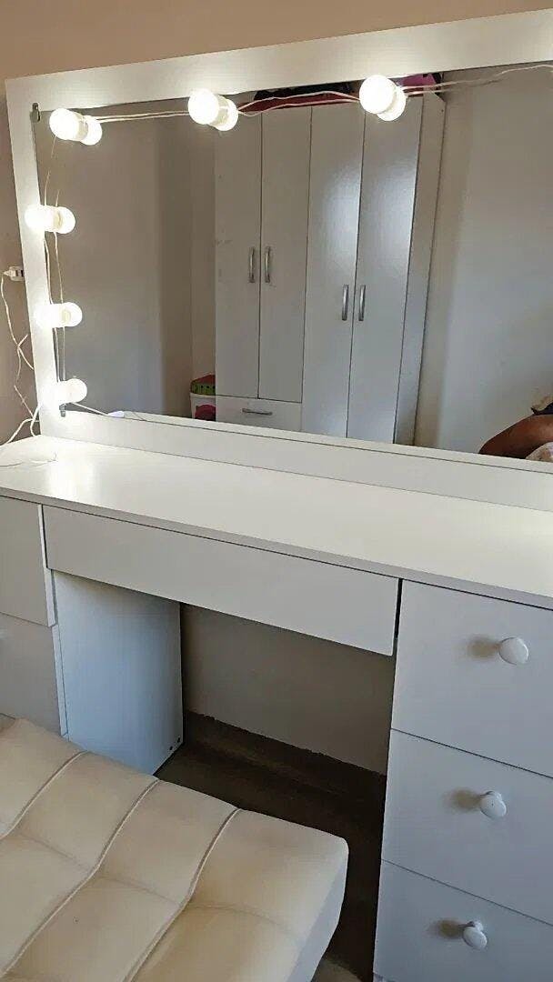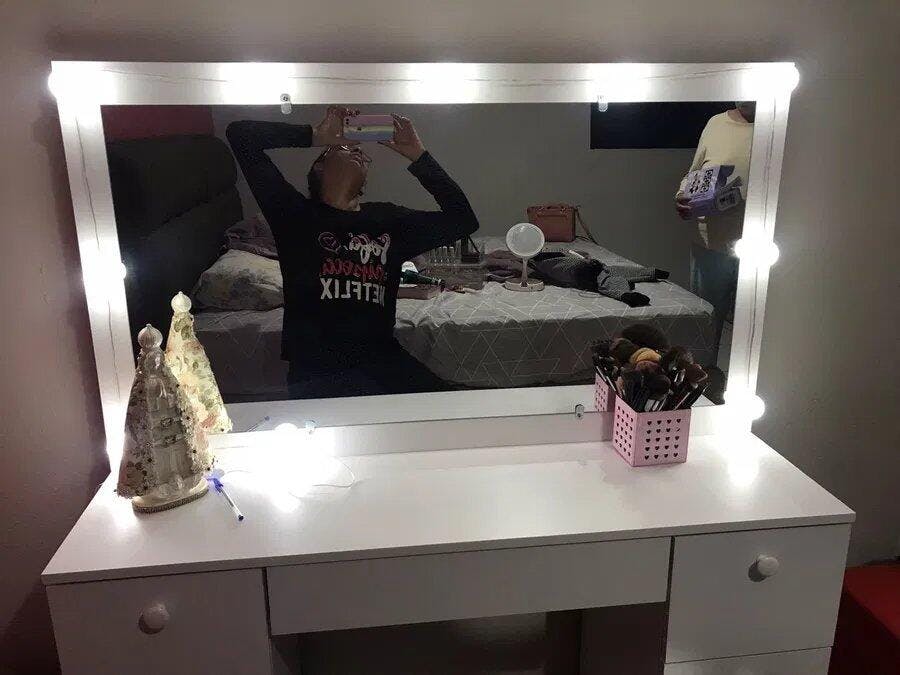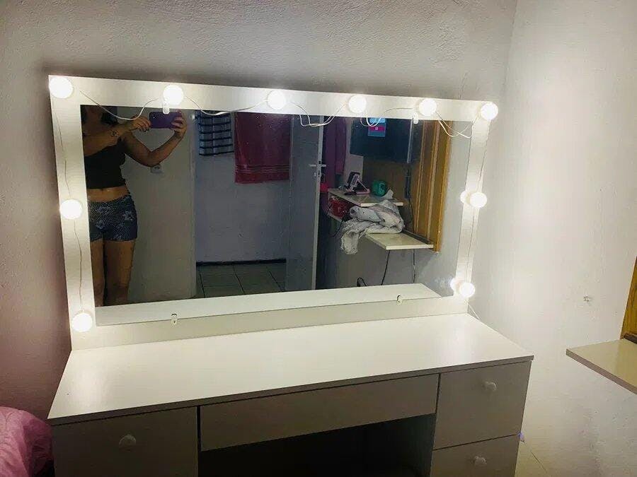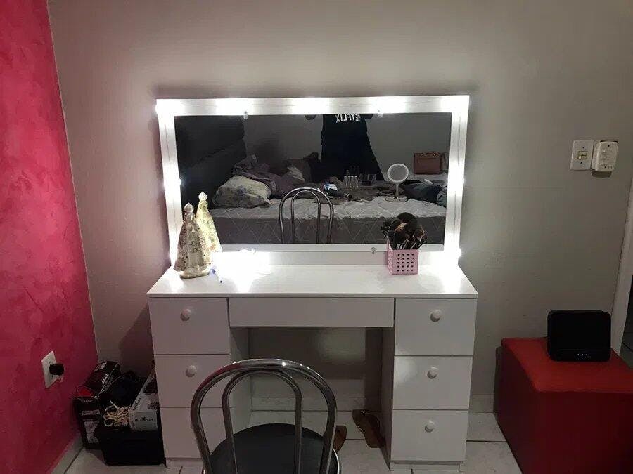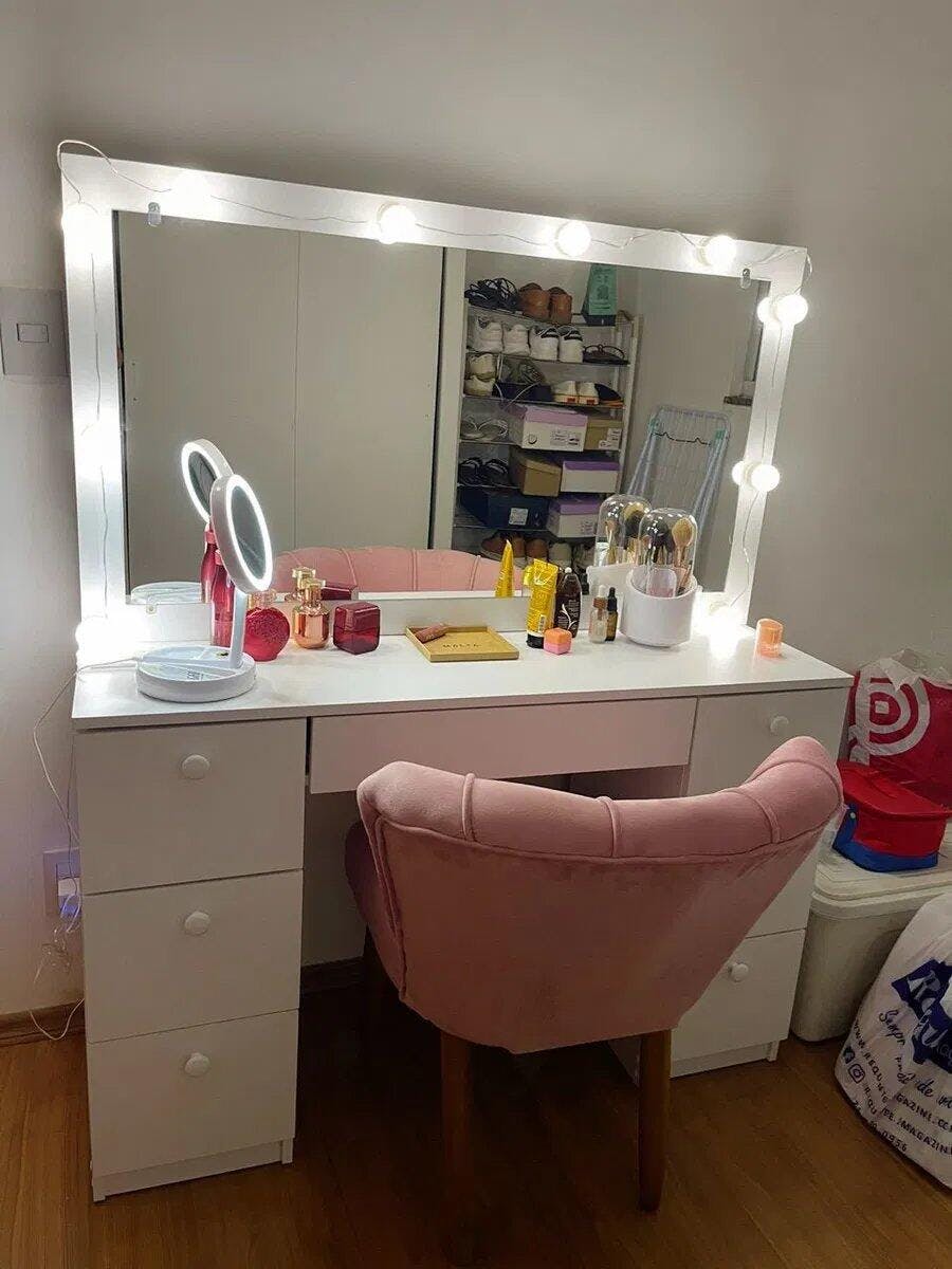 Diferente das penteadeiras comuns, este modelo oferece Máxima Capacidade de Organização e um sistema de iluminação que garante a maquiagem perfeita, sem sombras indesejadas.