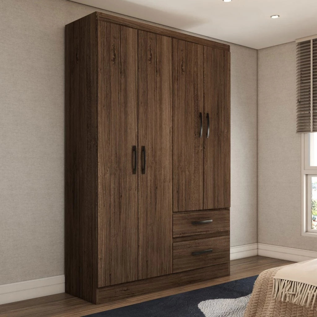 O(a) Guarda-Roupa Solteiro São Francisco 4 Portas 2 Gavetas Castanho - Loja Móveis é produzido em MDP na escala de brilho Semi-Brilho, e possui um grau de dificuldade de montagem: Médio.